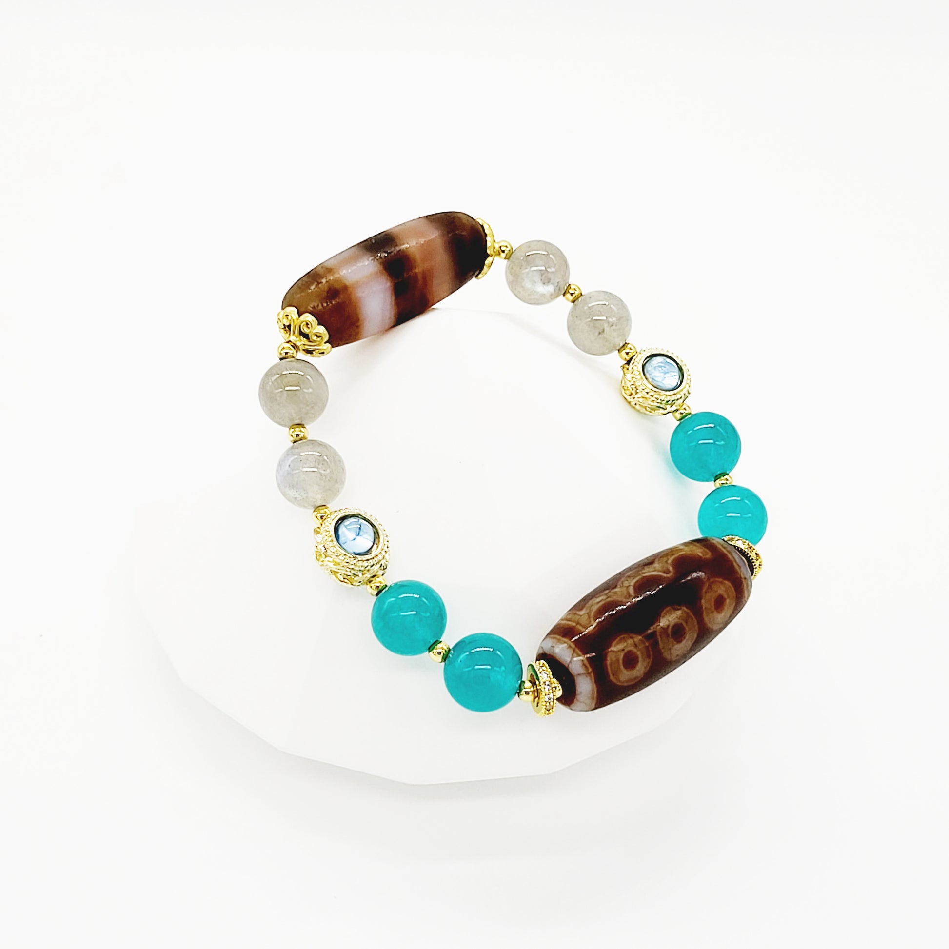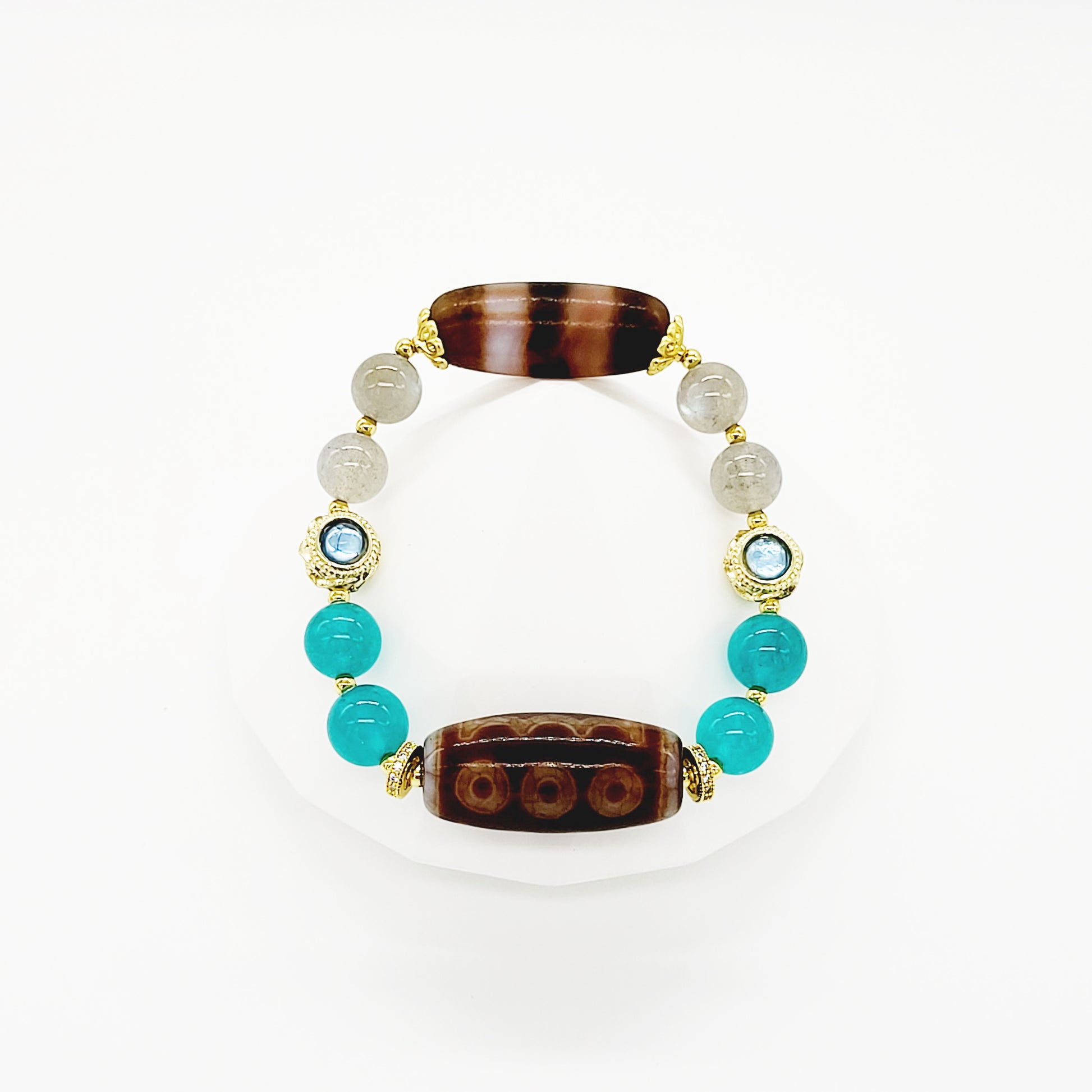 Paired with Striped Dzi, helps to turn an unfavorable situation into a favorable one and promises harmonic life and prosperity to its owner.