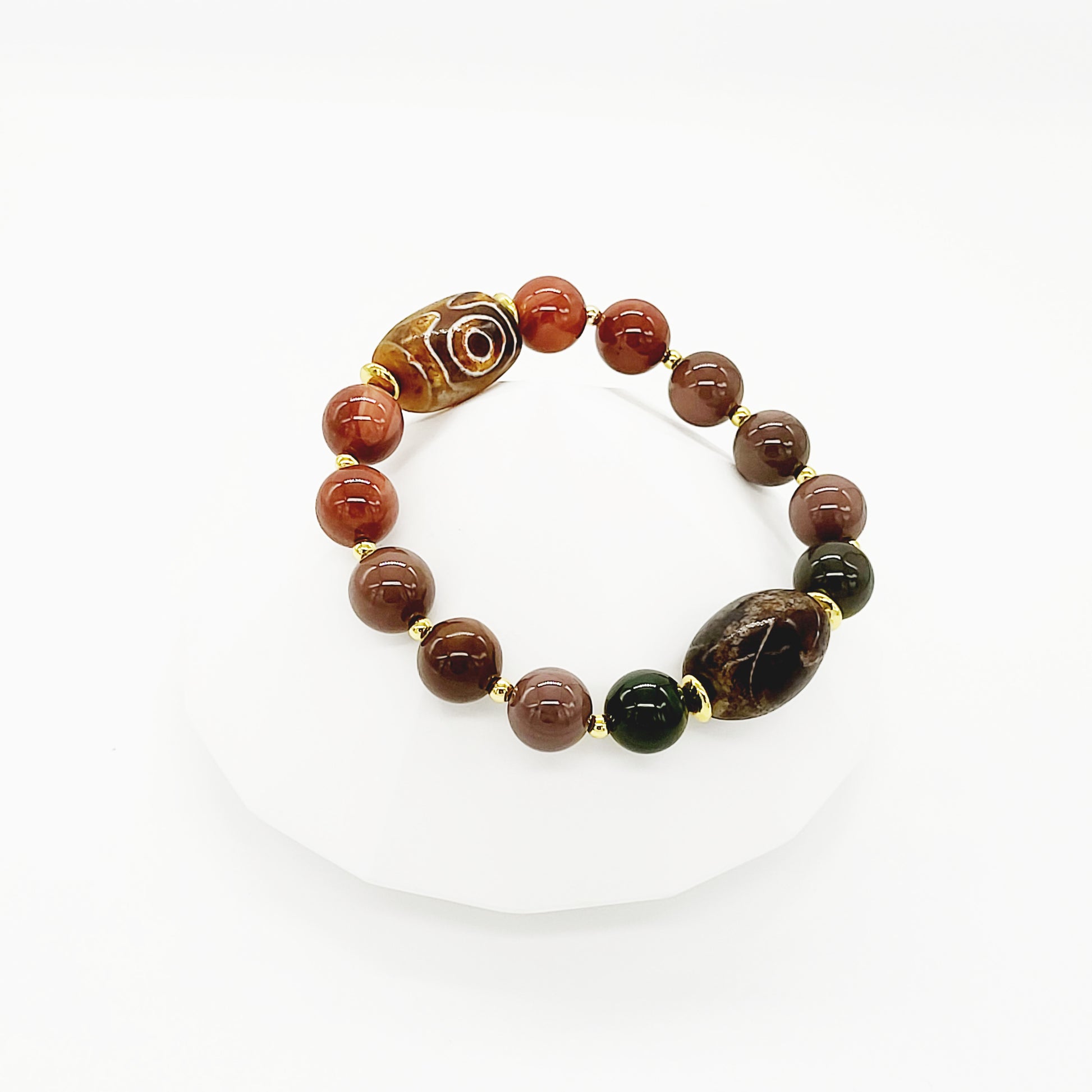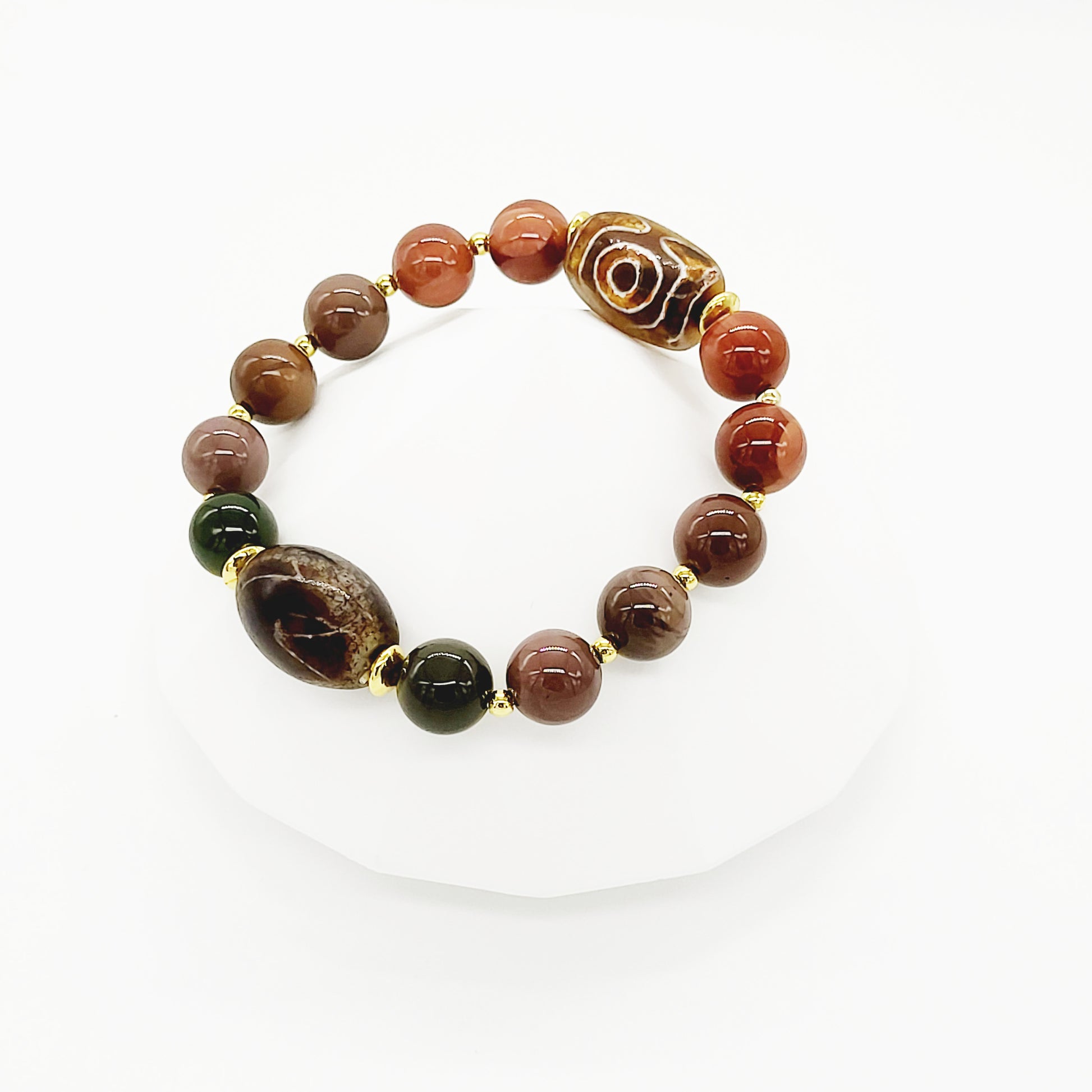 To boost up the benefits, we used Alashan Agate to enhance mental function, improving concentration, perception, and analytical abilities. It soothes and calms, healing inner anger or tension and creating a sense of security and safety.