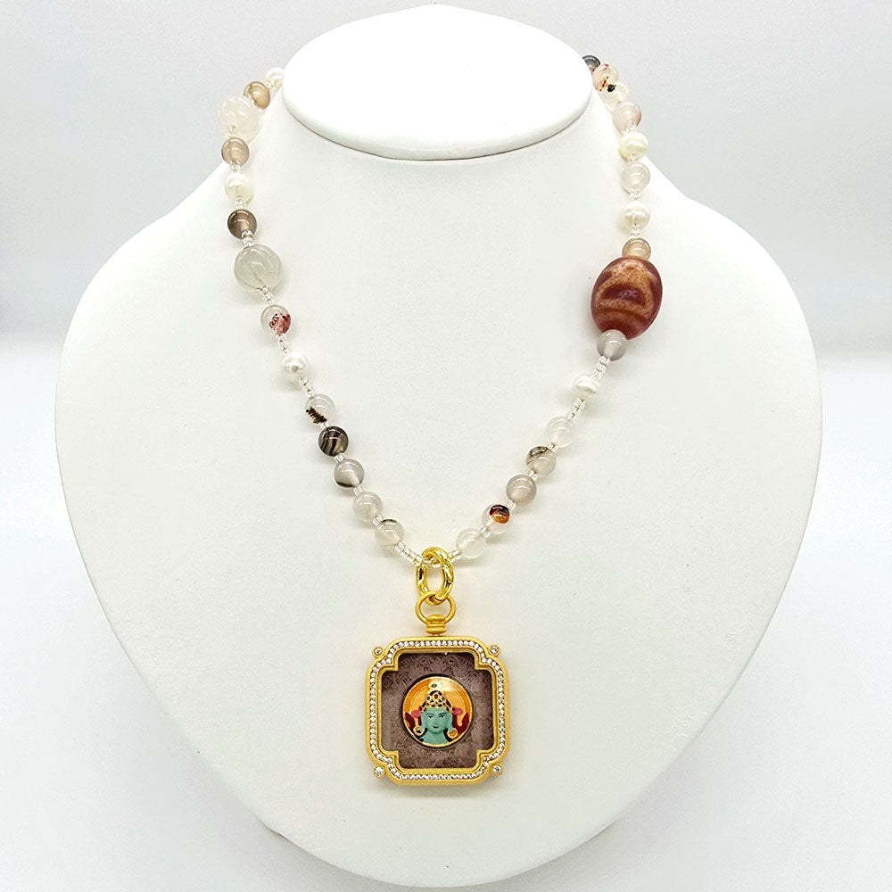 This Dzi necklace combines the wisdom and compassion of Bodhisattva Tara (Green) with the wealth-attracting energy of the God of Wealth, offering multidimensional protection, financial attraction, and obstacle removal. It is ideal for those seeking prosperity, balance, and inner peace.