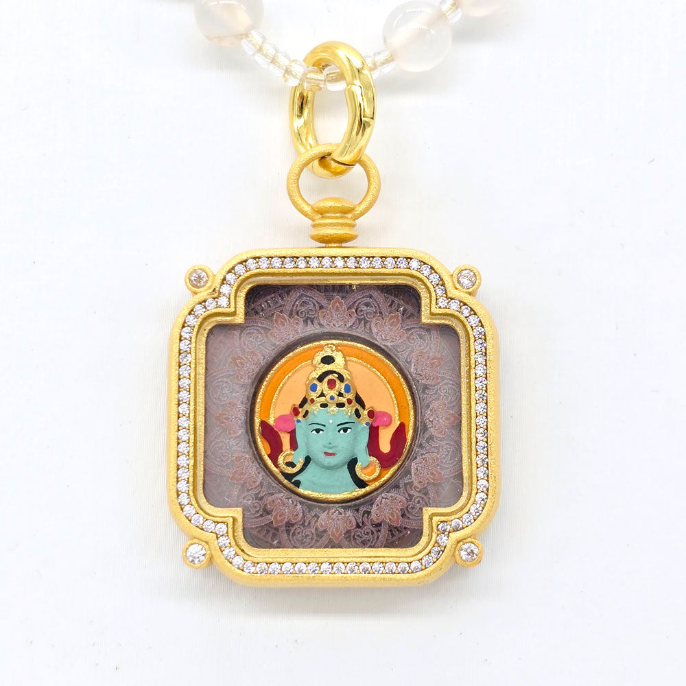 - 绿度母(Tara)是佛教中最受尊崇的菩萨之一,象征着慈悲、智慧与解救。她的能量帮助佩戴者化解生活中的困境和障碍,提供心理上的支持和心灵的宁静。