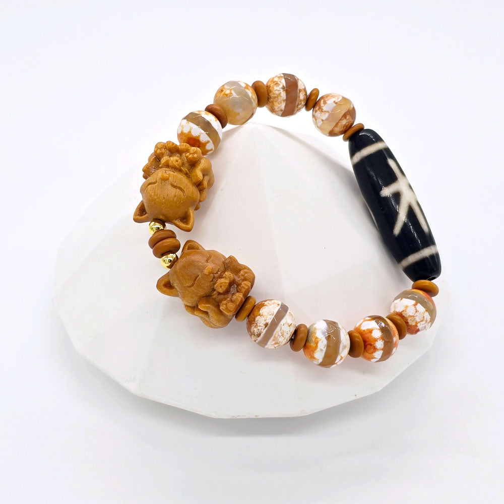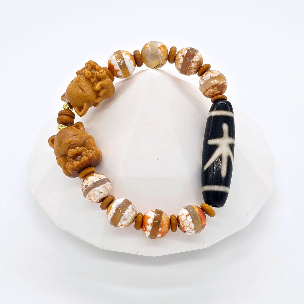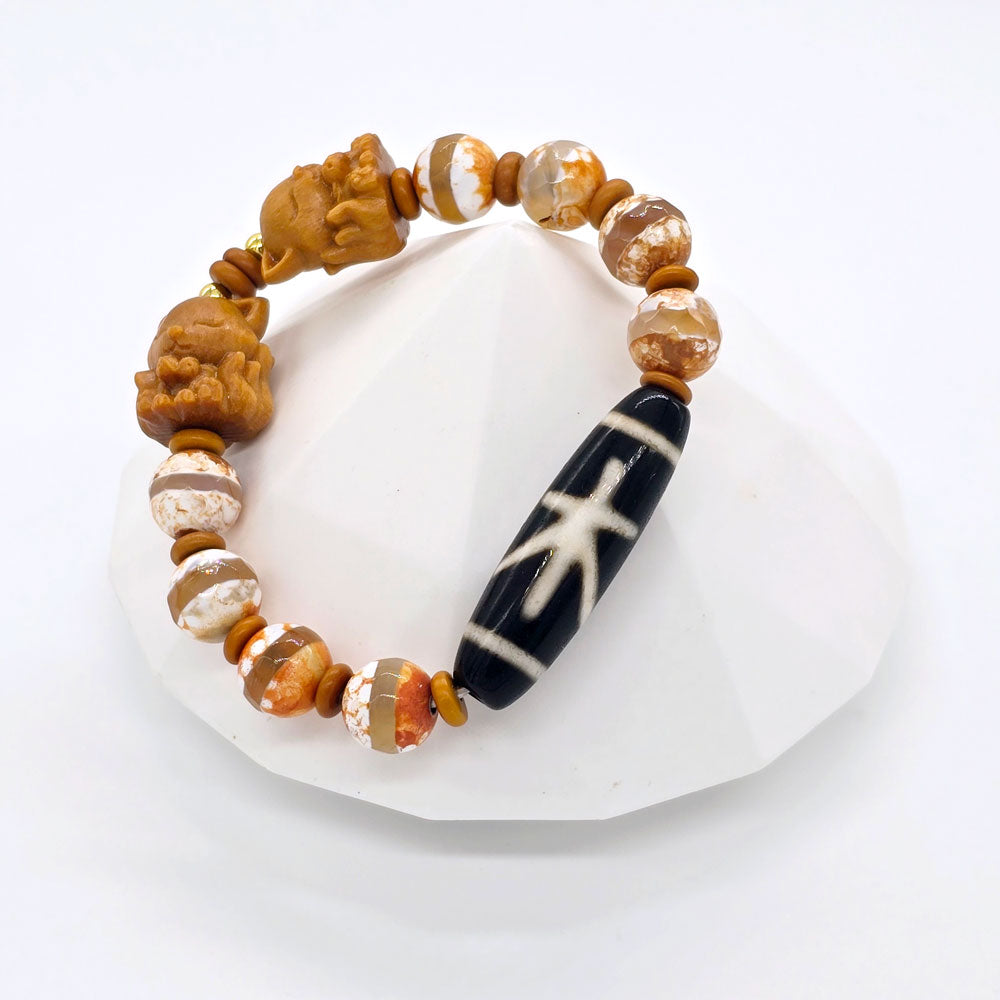 🌿 If you want career growth, better helpful people luck, and enhanced health energy, the Five Elements Wood Dzi Bracelet is a great choice!