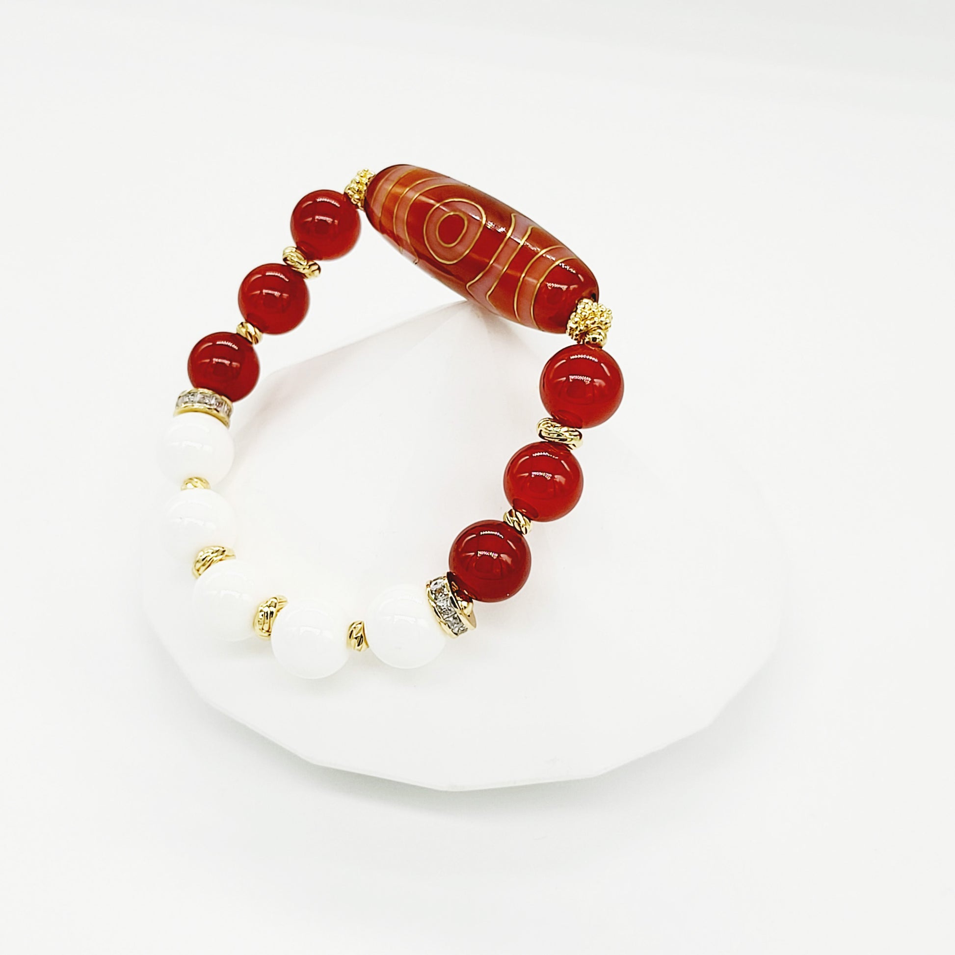 This Dzi bracelet aims to provide its wearer not only wealth but also strength and support during difficult times or tremendous stress.