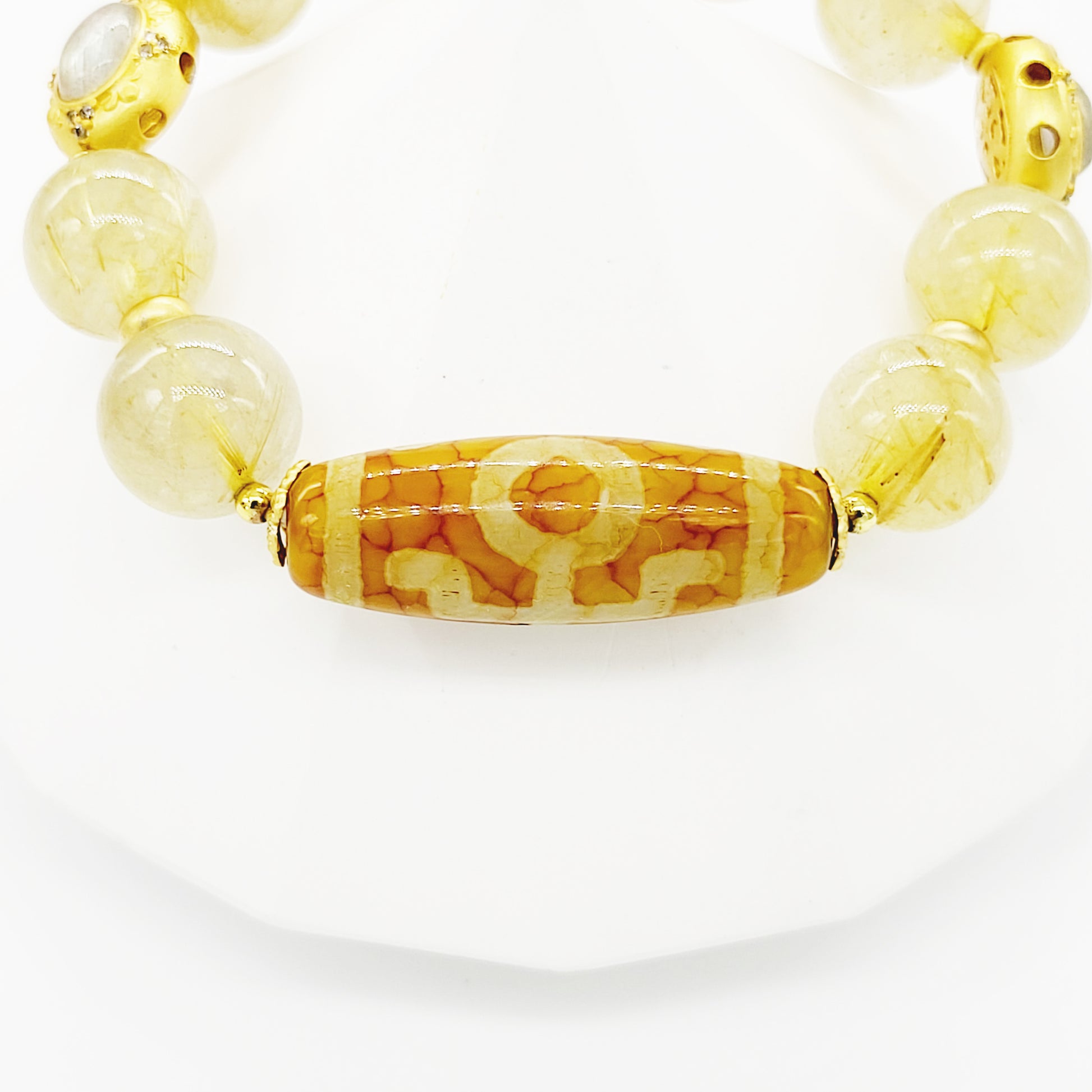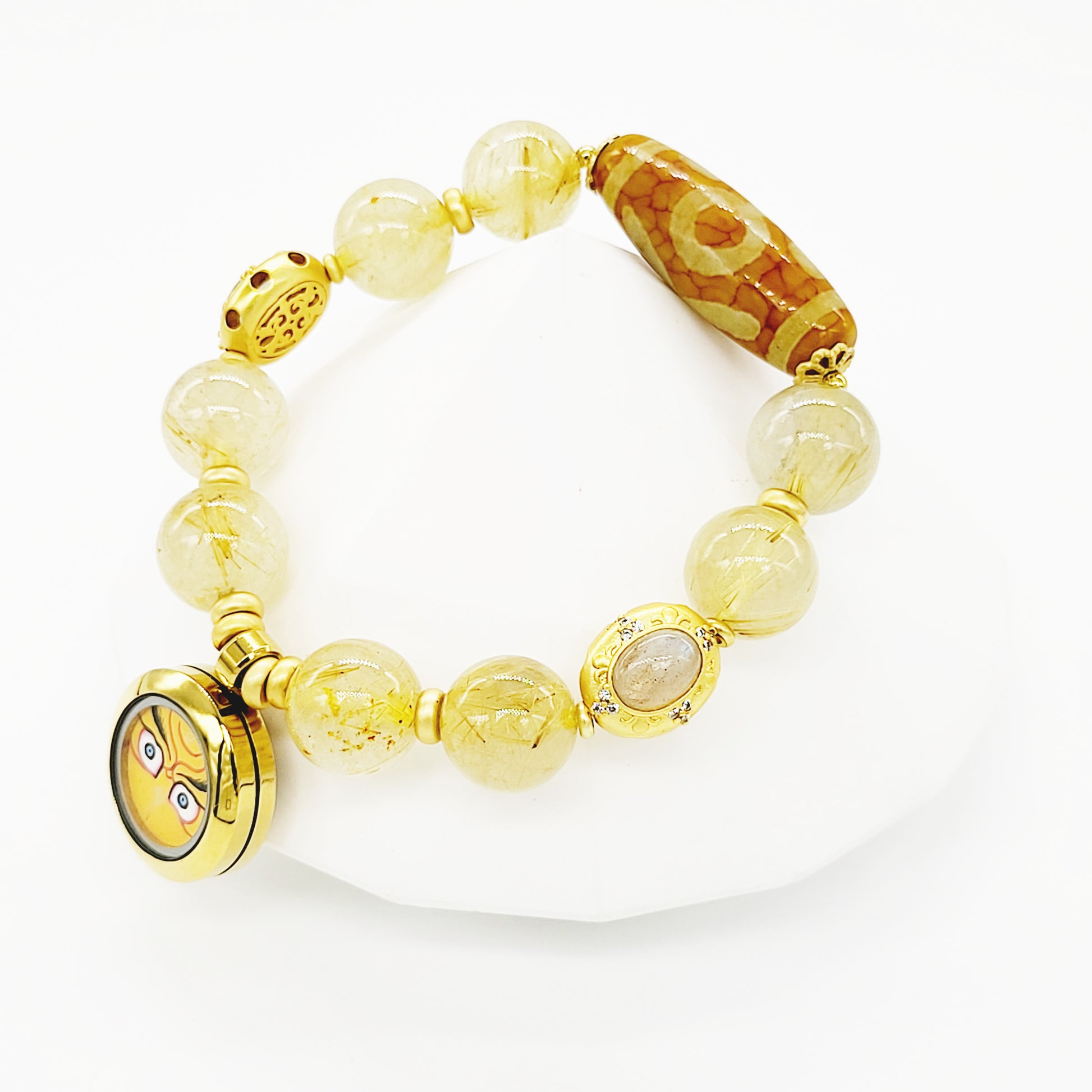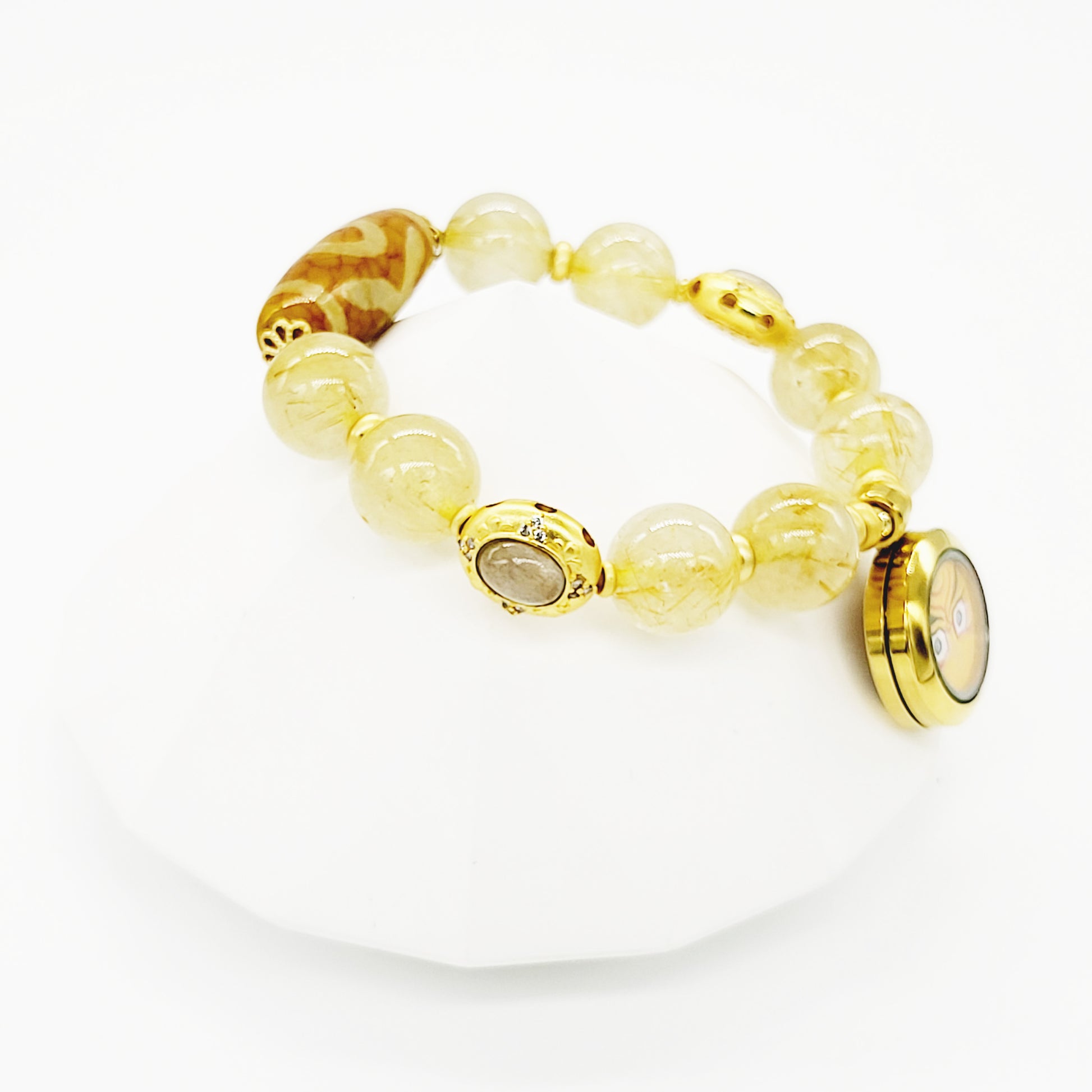 To boost its benefits, we added Golden Rutilated Quartz to give protection against the ill thoughts of others. It helps to reach the root of problems and facilitates transitions and a change of direction.